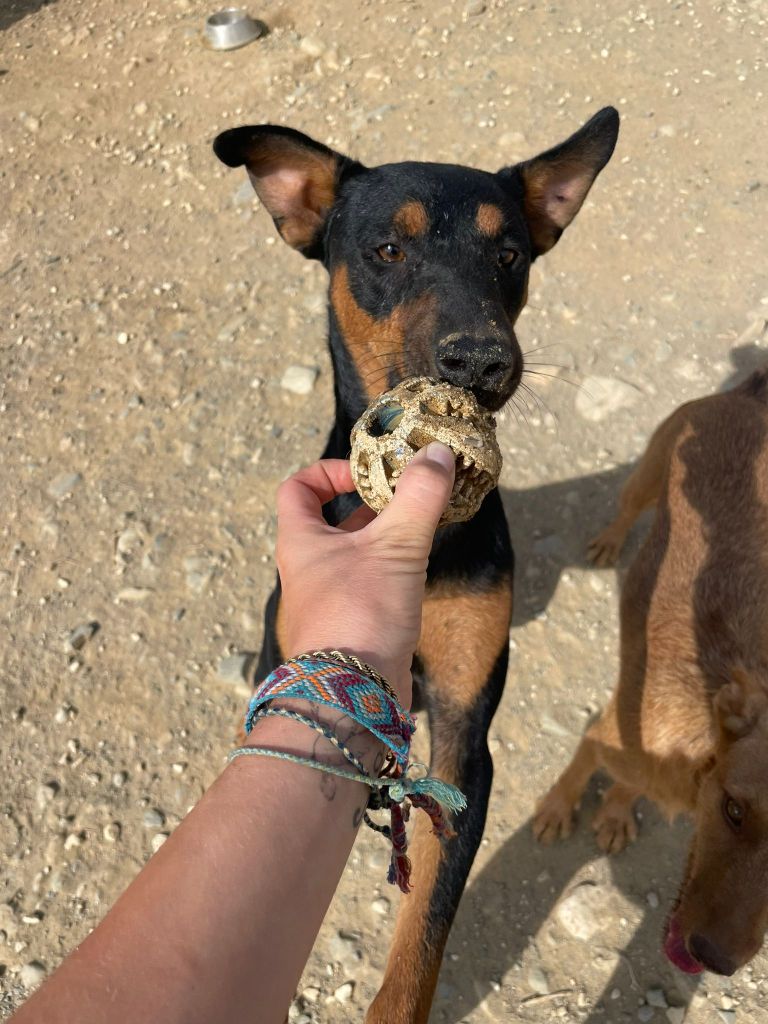 Typical young dog, he is playful and always up for a walk. If you like jogging or going for a walk, our Max is the perfect companion. Also he loves to play with his ball. Really cute!